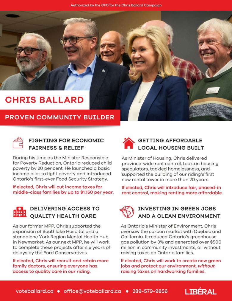 Ahead of the 2025 Ontario Election, former Ontario Minister and MPP Chris Ballard reached out to Lightbulb Narrative to craft his campaign narrative and local campaign literature pieces.